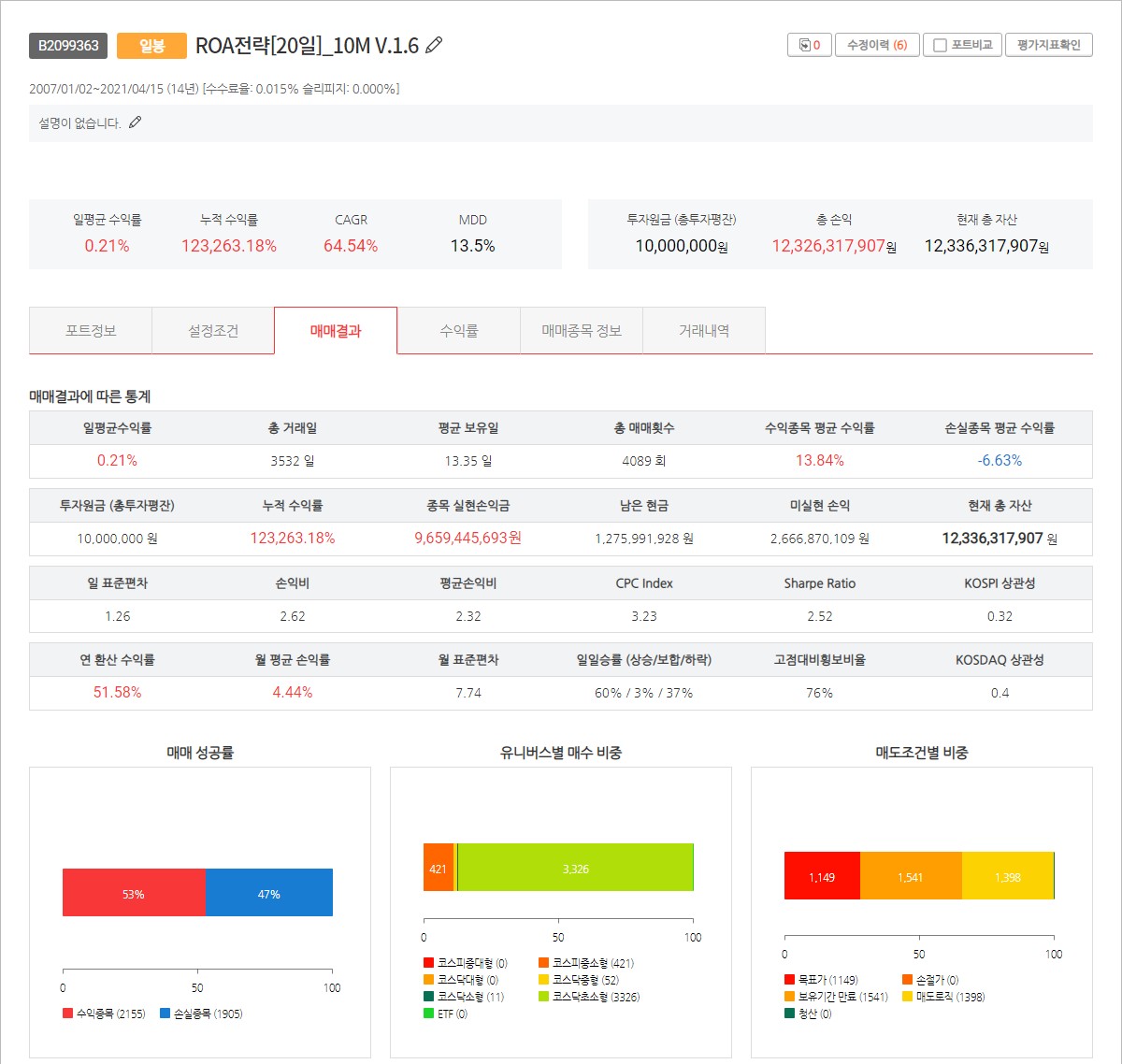 세 번째 젠포트 ROA전략의 매수, 매도 조건이다.
