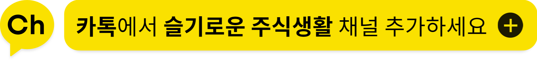 '슬기로운 주식생활' 채널(Ch+)을 추가하시면 주식, 코인, 경제뉴스, 시황 뿐아니라 여러분의 투자에 도움을 드리는 관심종목까지 매일 한번에 체크!! 노란색 배너를 클릭하시고 채널추가 버튼 클릭!!